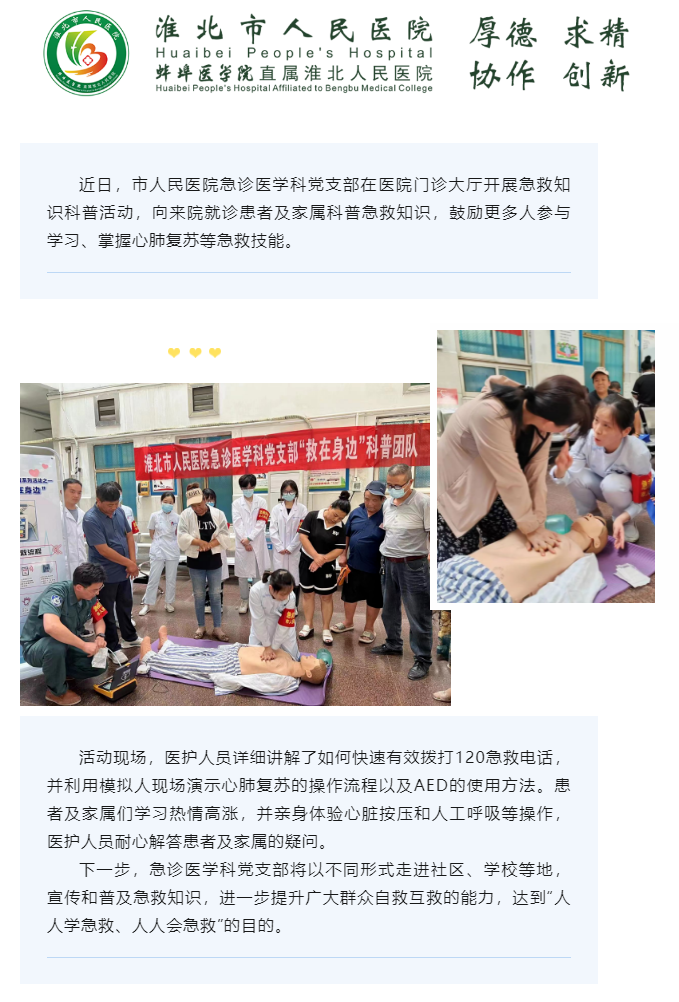 从心出发 救在身边 || 淮北市人民医院开展急救知识科普活动