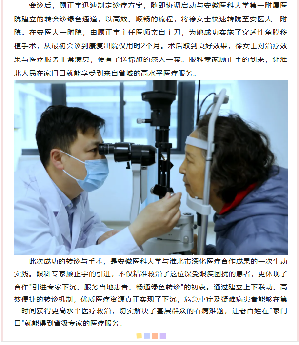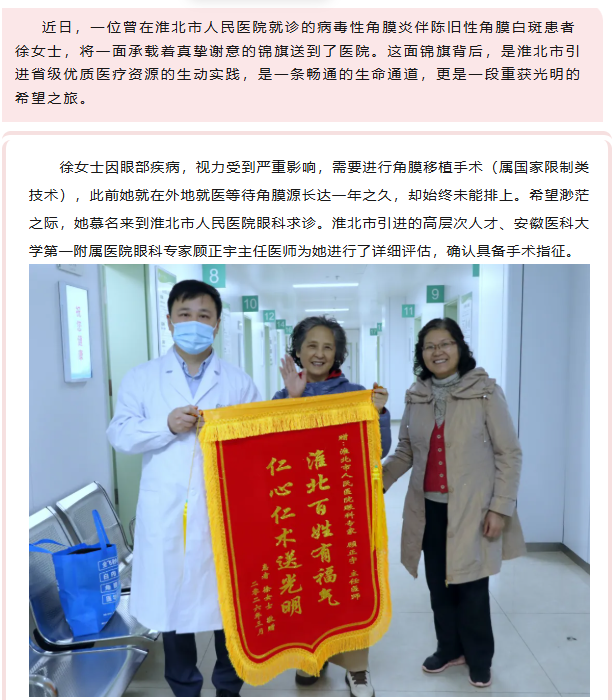 淮北患者角膜移植重见光明 安医-淮北医疗合作彰显实效
