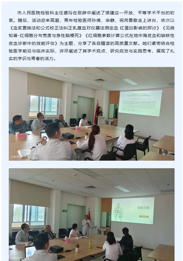 【人医“人才日”系列活动之三】市人民医院举办青年学术沙龙 助力检验人才成长