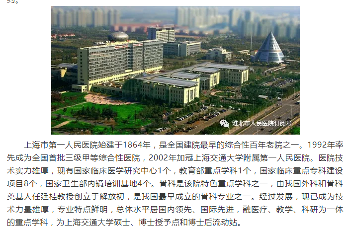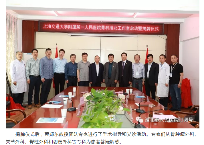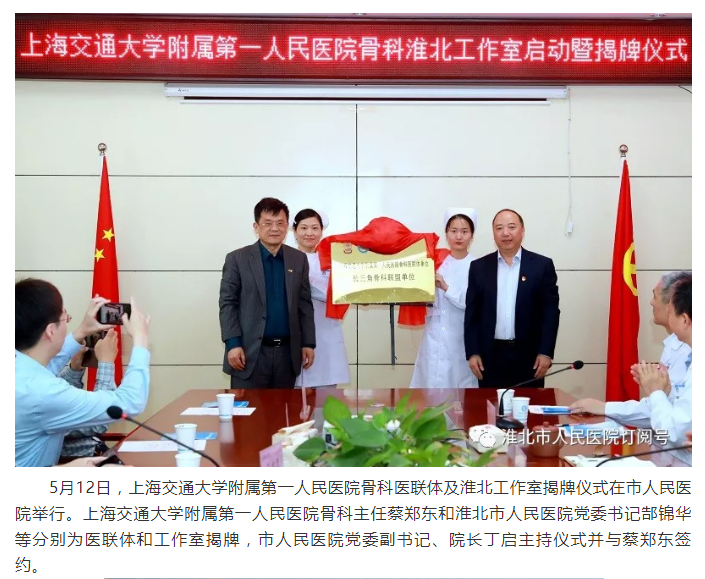 上海交通大学附属第一人民医院骨科淮北工作室落户市人民医院