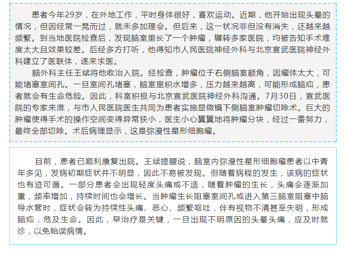 医院脑外科成功切除一例巨大脑室内肿瘤