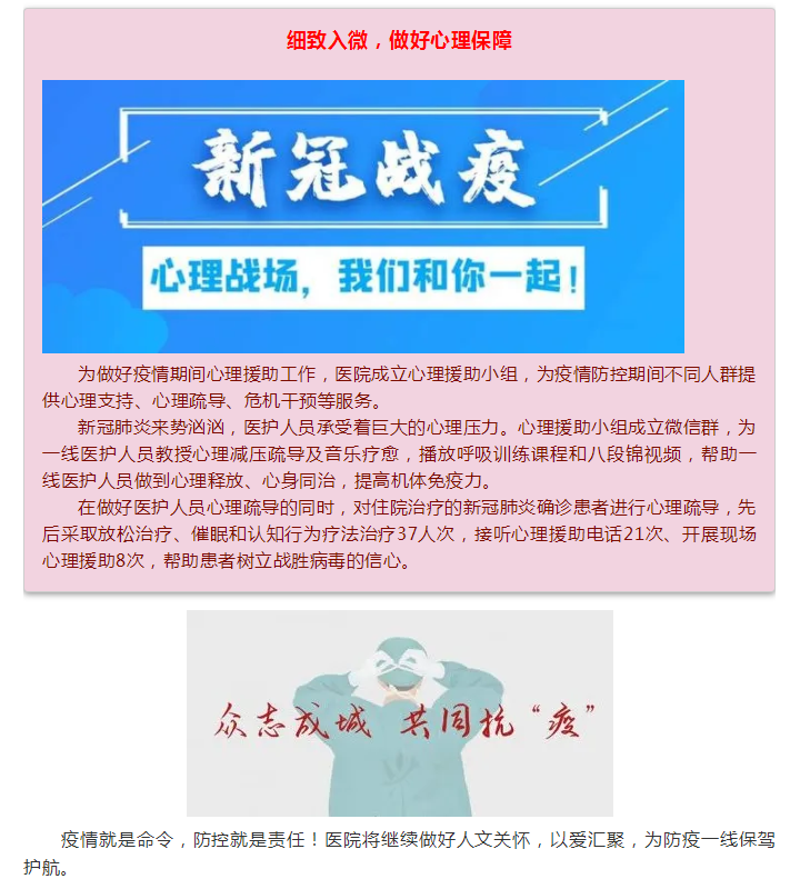 做好人文关怀,为抗疫一线人员提供“双重”保障