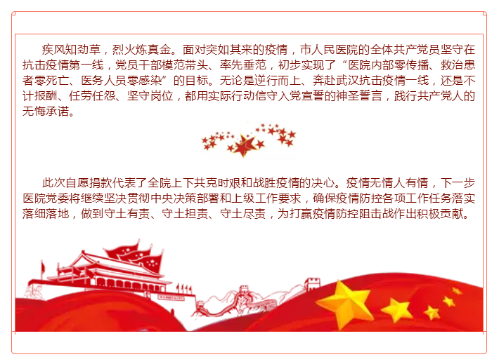 淮北市人民医院党员干部职工为抗击疫情踊跃捐款