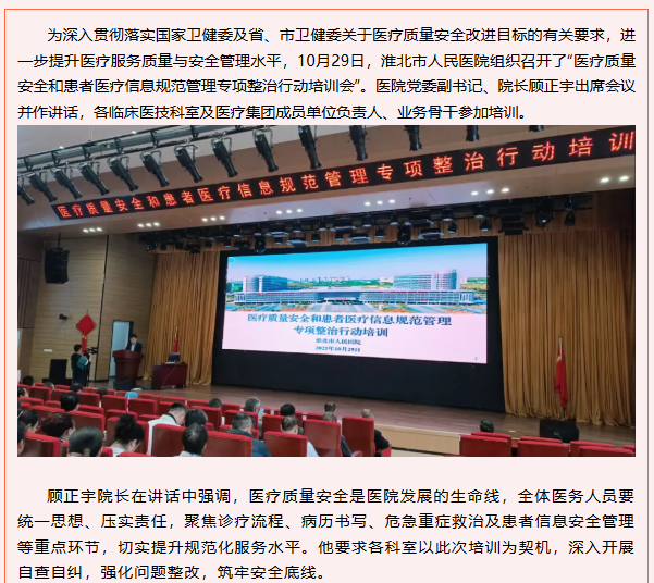 人人讲质量、处处防风险——市人民医院举行医疗质量安全与患者信息规范管理专项整治培训会