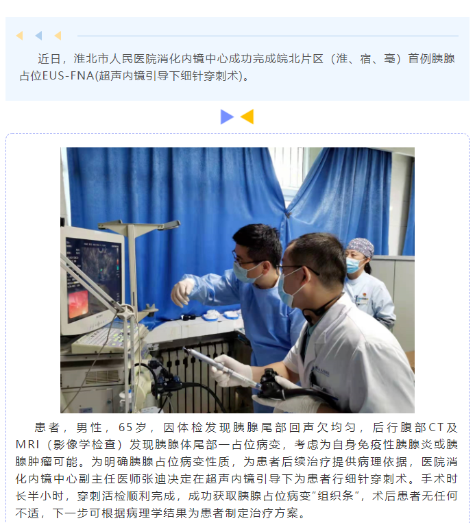 淮北市人民医院成功完成皖北片区首例胰腺占位超声内镜引导下细针穿刺术(EUS-FNA)