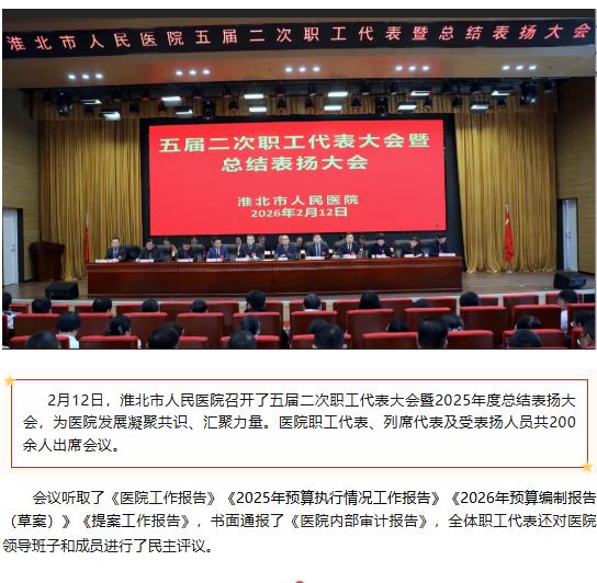 春潮涌动启新程,奋楫扬帆正当时——淮北市人民医院召开五届二次职工代表大会暨2025年度总结表扬大会