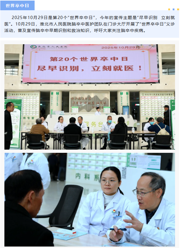 【尽早识别 立刻就医】淮北市人民医院开展“世界卒中日”义诊活动