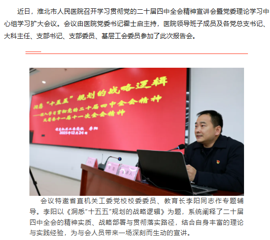 淮北市人民医院召开学习贯彻党的二十届四中全会精神宣讲会