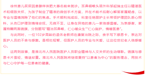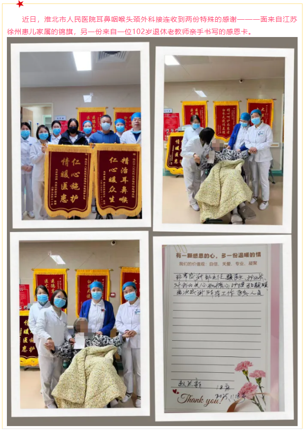 淮北市人民医院耳鼻咽喉头颈外科:锦旗与感恩卡见证深厚医患情