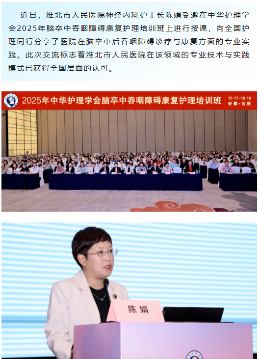 淮北市人民医院脑卒中吞咽障碍诊疗成果获全国认可,护理经验登上中华护理学会讲坛