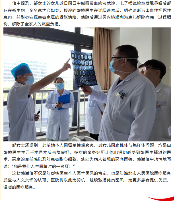 12345便民热线转来暖心感谢信 赞誉市人民医院耳鼻咽喉头颈外科医生医者仁心