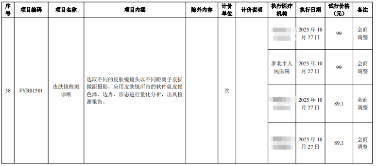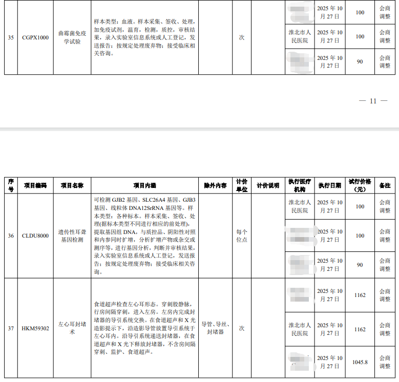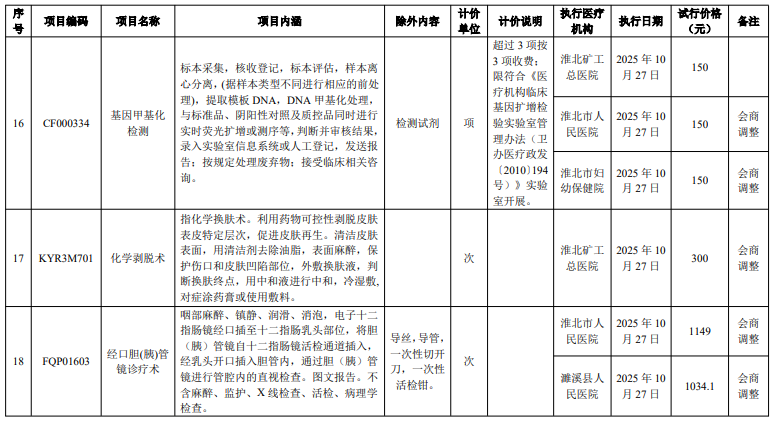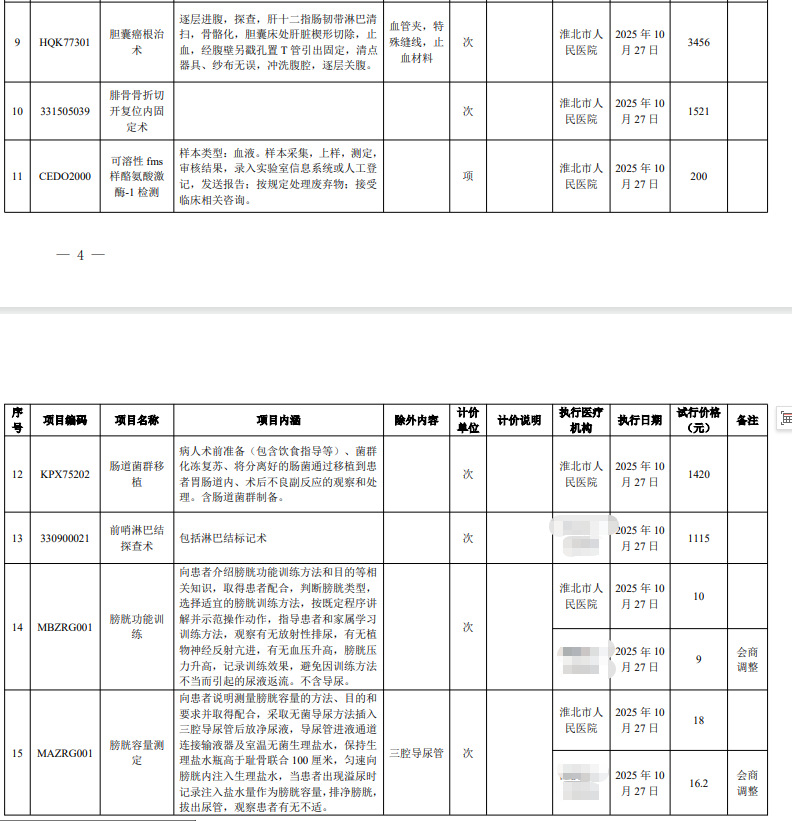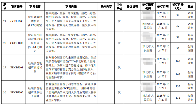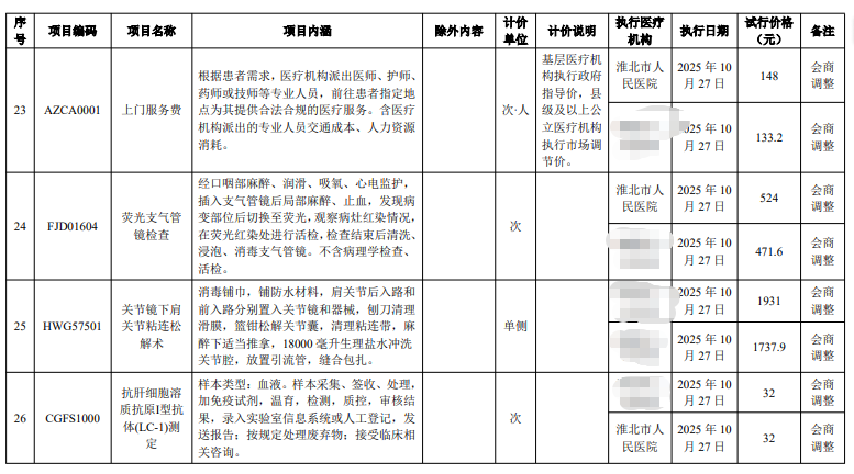 淮北市人民医院服务价格