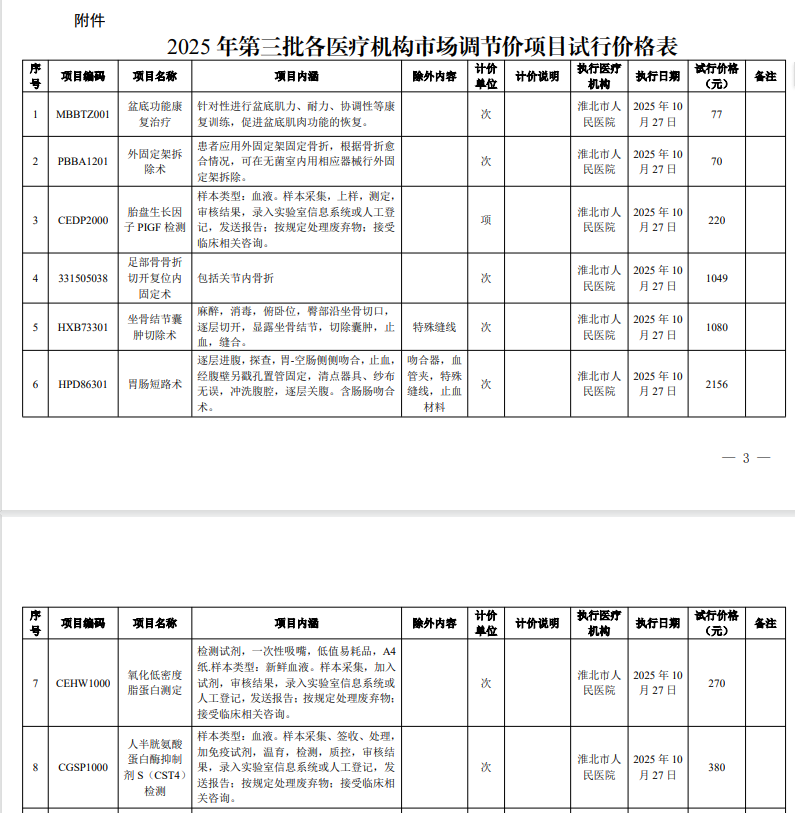 关于2025年第三批各医疗机构市场调节价项目试行价格的函