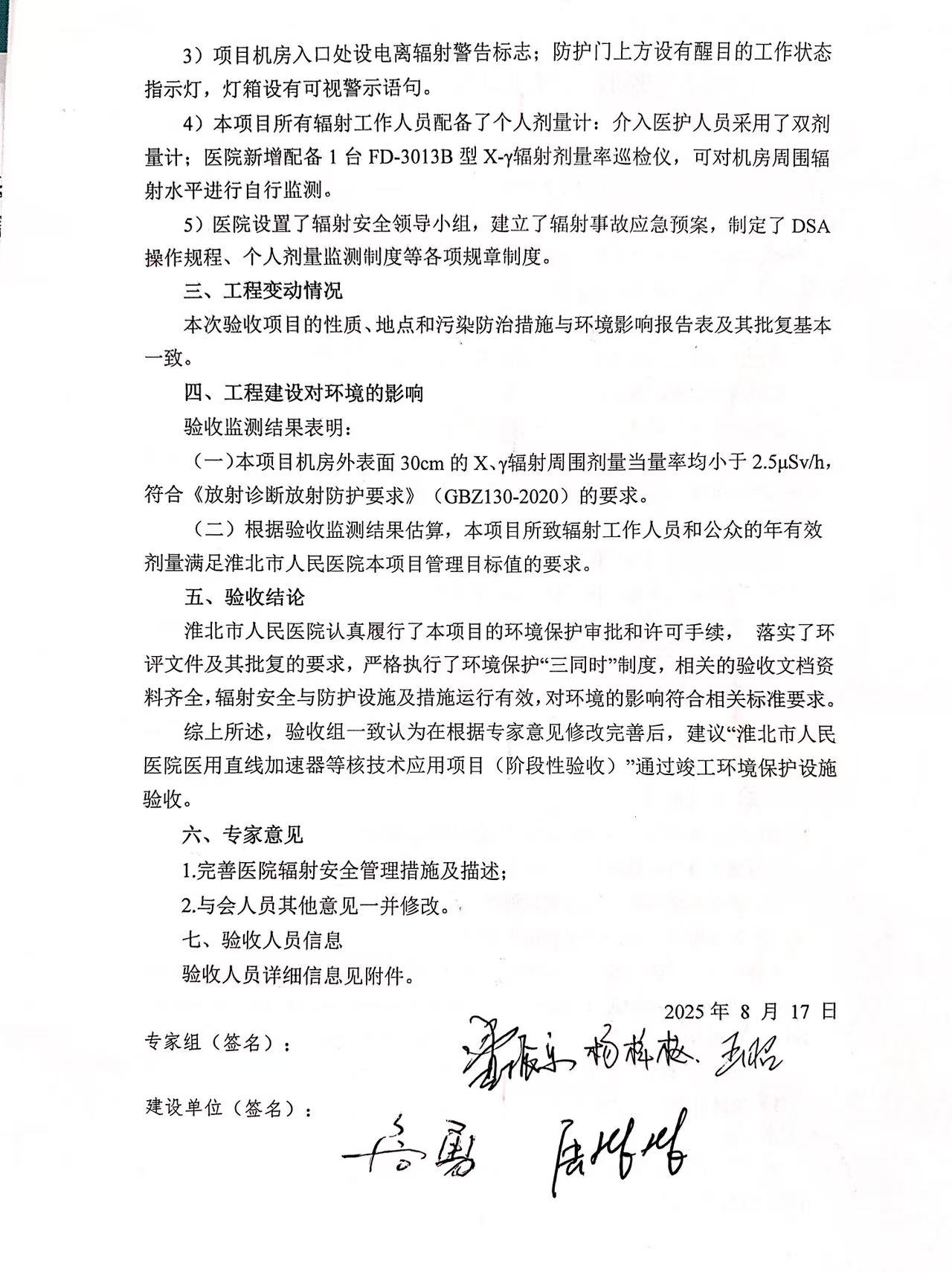 淮北市人民医院医用直线加速器等核技术应用项目竣工环境设施验收