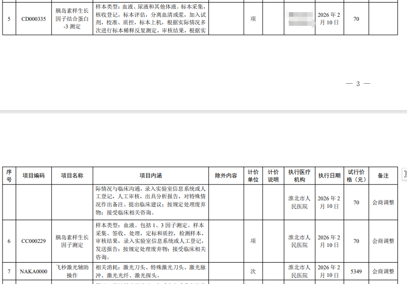 关于2026第一批各医疗机构市场调节价项目试行价格的函